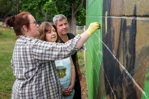 Taking a photo of a piece of community art that has recently been finished. Leticia Wilmot from the shire and the artists will be there.
