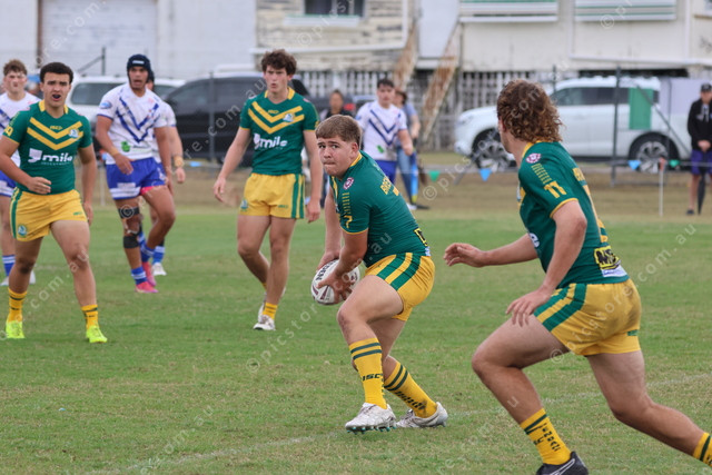 St Brendan’s Lachy Anderson about to fire a long cut out ball.