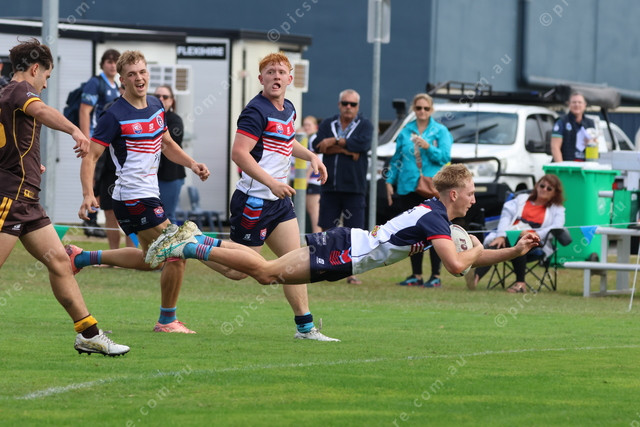 Emmaus’ Will McLaughlin with a huge swan dive as he scores in game one.