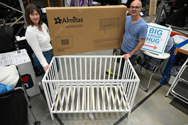 Big Group Hug need mattresses to go with their cots. Pic of Maria Quigley Manager and Fernando Guedelha Fix-It coordinator. (Damjan Janevski). 507387_01