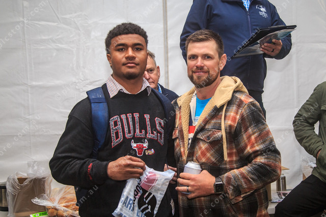 Jone Rarabalavu being presented his jersey by Brandon McNicol. Picture by Chris Munro