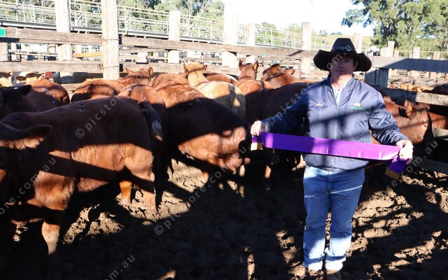 Justin Almond stands with the Grand Champion Pen of Weaners. 482791_07