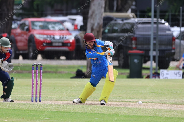Callide Dawson’s Jordan Stratford knocks the ball back down the pitch.