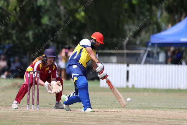 Gladstone’s Hayden O’Connor goes for a major shot over the top.