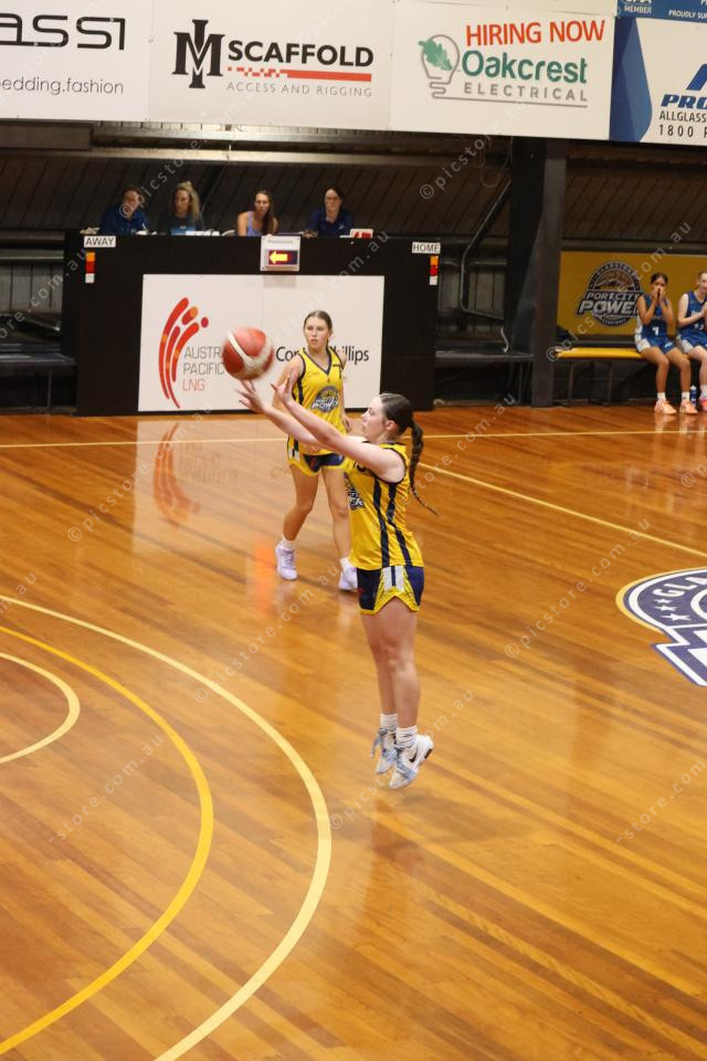 Gladstone’s Makenzie MacBeath shoots from beyond the arc.