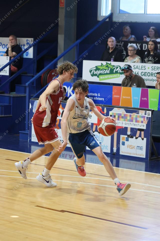 Jets’ James Newton puts the ball on the floor and gets past his opposition.