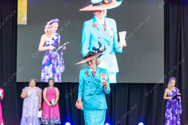 Karlie Owen on the runway. She will go on to win Runner Up Best Millinery. 519196_28