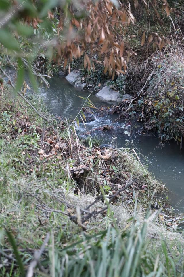 Debris from tree branches and leaves is starting to encroach on the width of the creek. (485687)