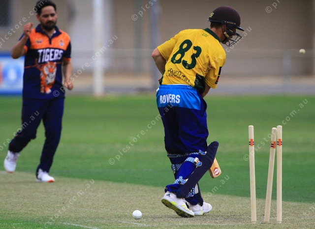 DEATH RATTLE: Lucas Nitschke’s stumps are rattled for just five by a Balpreet Singh delivery. (PIC: PHIL WILLIAMS 511314_06