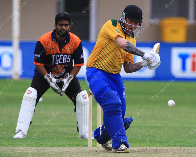 UNBEATEN: Ben Ellis winds up to send the ball to the fence during his unbeaten knock of 57. (PIC: PHIL WILLIAMS 511314_07)