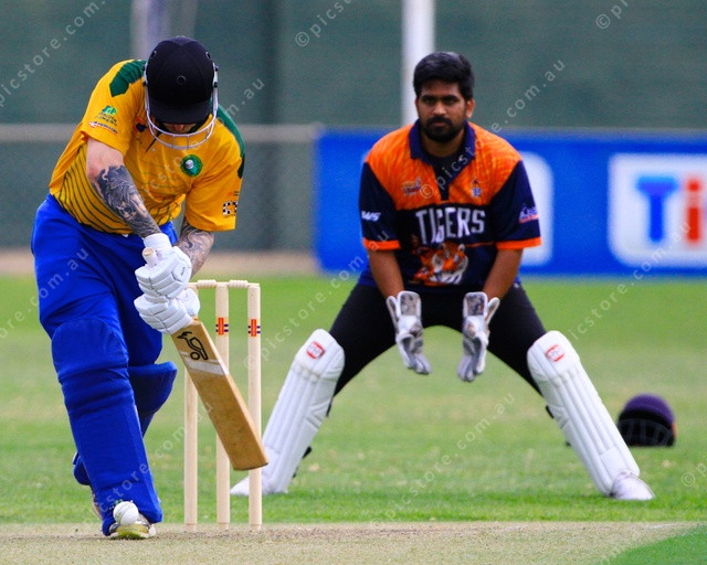 TRAPPED: Harry Weeks is hit on the boot before being given out LBW. (PIC: PHIL WILLIAMS 511314_11)