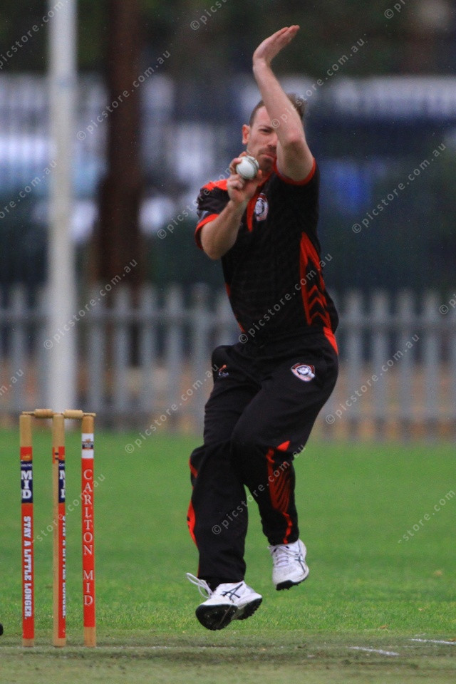 FLIGHT: Jacob Goodlet in full flight at the top of his delivery stride. (PIC: PHIL WILLIAMS 514562_03)