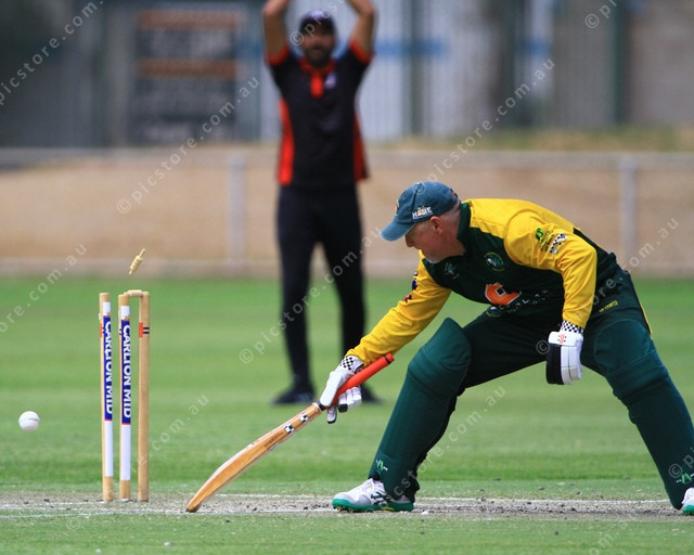 SAFE: Mark Leembruggen makes his ground as the bails fly. (PIC: PHIL WILLIAMS 465265_03)