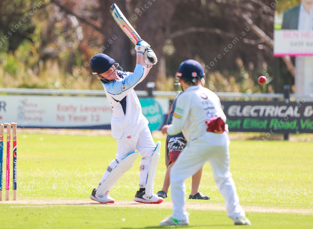Victor Harbor batsman Alfred Bartholomaeus whacks a ball back over the bowler’s head. (Jesse Ehlers) 462848_13