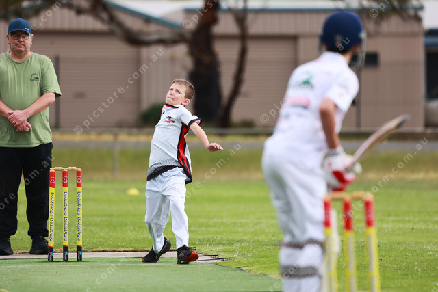 Port Elliot under 14 Mitchell Weeden loads up for this bowl to the Willunga batter. (Jesse Ehlers: 521327_06)