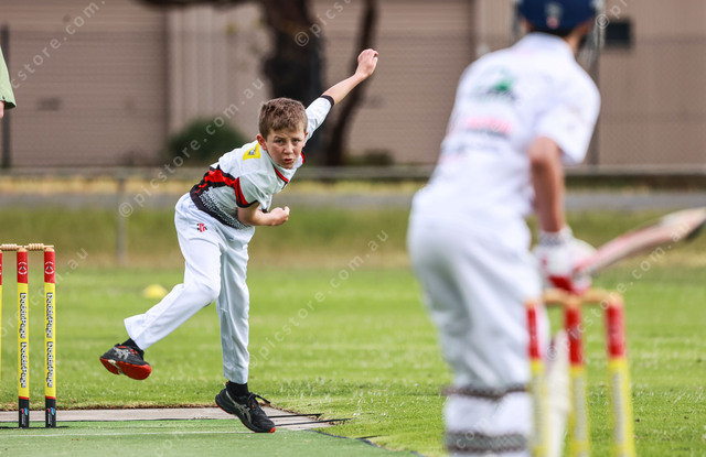 Port Elliot bowler Mitchell Weeden watches his bowl to the Willunga batter during their under 14 match. (Jesse Ehlers: 521327_07)