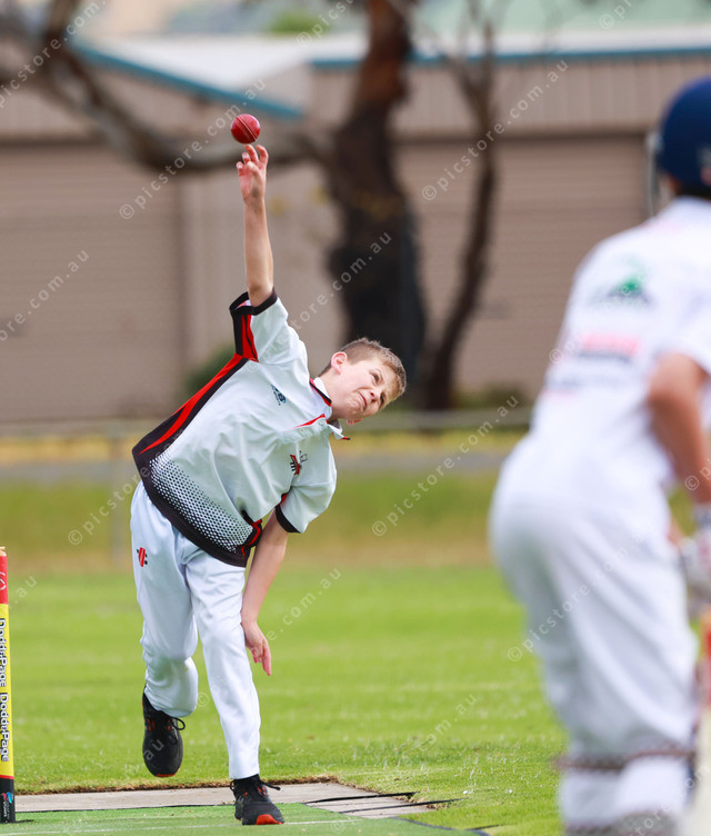 Port Elliot under 14 bowler Mitchell Weeden sends the ball down the pitch. (Jesse Ehlers: 521327_08)