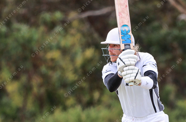 Goolwa batter Josh Jones watches his hit during his A grade match. (Jesse Ehlers: 521327_17)