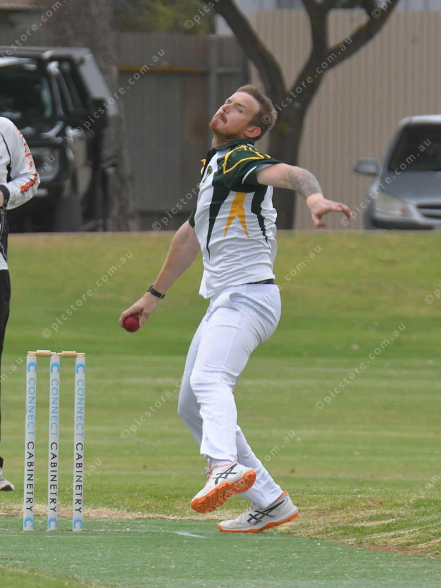 Braden Gregory, Wanderers, gets ready for a bowl.