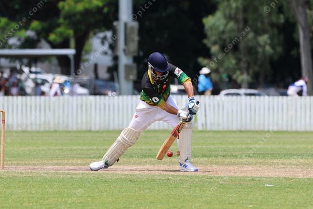 The Four Skins’ Hayden Pope gets right behind the ball.