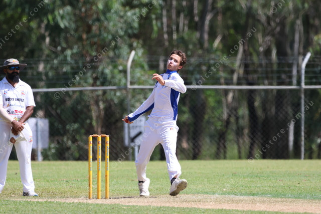 Capricorn Coast’s John Mulville steams in during the team’s second grade clash with Rocky United. (Liam Emerton:466016)
