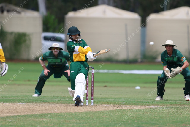 Gracemere’s Alex Raguse with a pull shot.