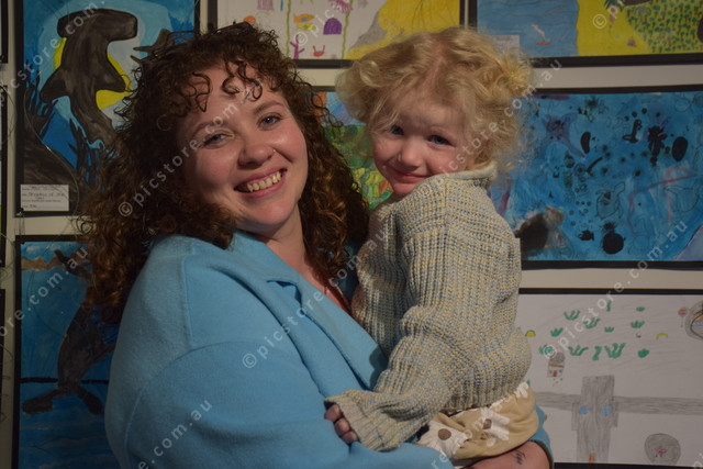 Ashlee Freeman and daughter Ivy admired the ocean themed artworks at the Crisps Youth Art Prize.