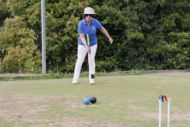 Susan Mason guiding her ball closer to the peg.