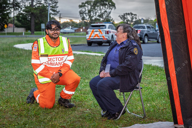 Cranbourne SES Member Josh Premaka at the triage station that the team setup.