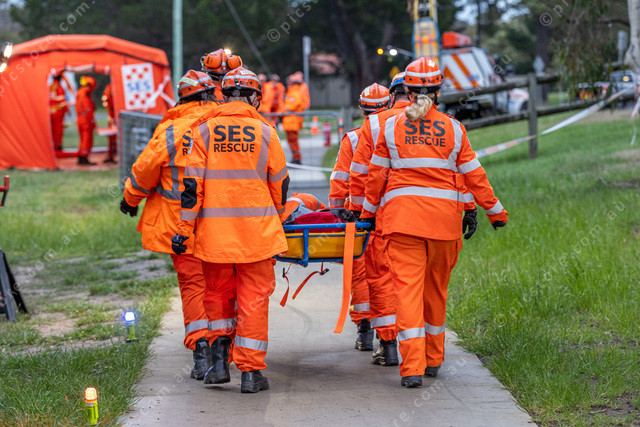 Walking a patient from the train to the triage station.