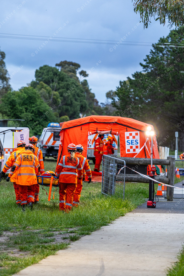 Walking a patient from the train to the triage station.