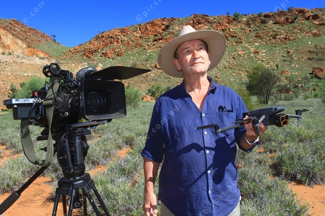 LAUNCH: Chris Tangey prepares to launch a drone on location near Alice Springs. (PIC: PHIL WILLIAMS 470268_07)