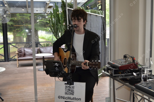Nic Hutton entertaining the Melbourne Cup crowd in the Bellevue Dining Room (Dee Elferink: 515302_03)