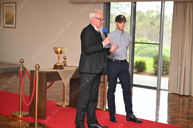 Melbourne Cup Tour in Palmlake Resort, Truganina. Pic of Joe McGrath, Ambasador At Large, Victoria Racing Club, and Will Hayes. (Damjan Janevski). 503050_01