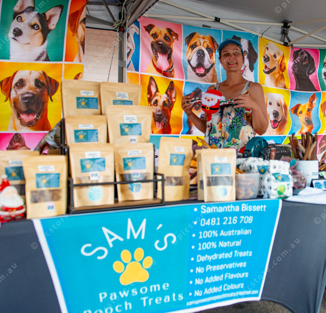 Sam Bissett of Sam’s Pawsome Pooch Treats at Christmas Where the Angas Flows. (Jack Church 524959_01)
