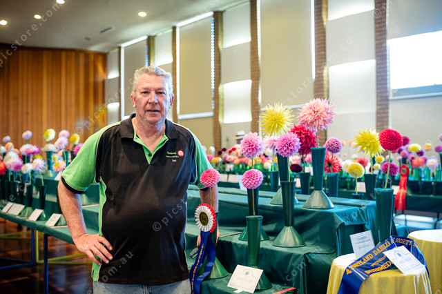 464279_29 (Portland’s Ian Hamley, current secretary of the Portland Dahlia Society, who won first place in the intermediate championship event with with his entry titled “Pink Suffuison”)