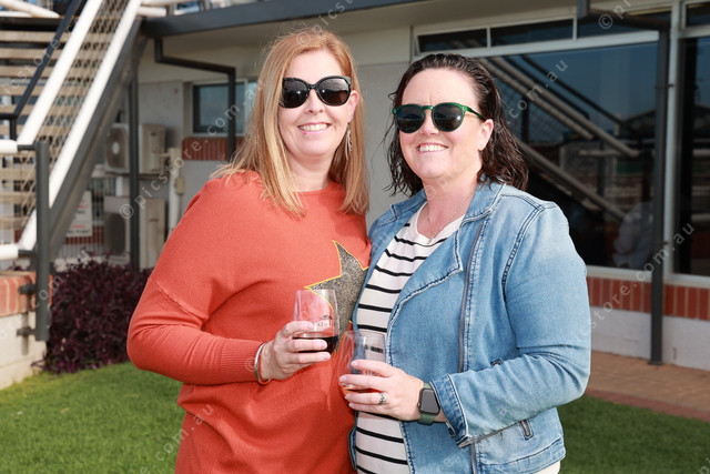 Strathalbyn locals Karen Fox and Carly Sheriff enjoying a glass at the races. 479185_06