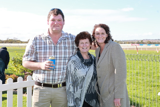 Jack Harvey, Heather McHugh and Katie Harvey of Mount Compass enjoying a brisk Sunday at the Strathalbyn Racing Club. 479185_14