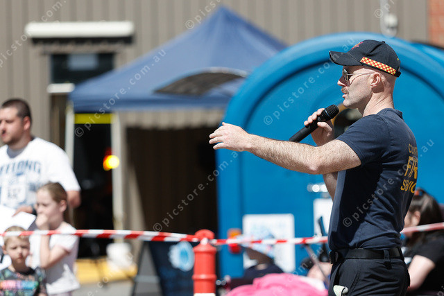 Matt Gaffney explains the procedures used during the road crash demonstration at the Dalkeith CFS demo day. (Mark Willoughby: 511831_01)