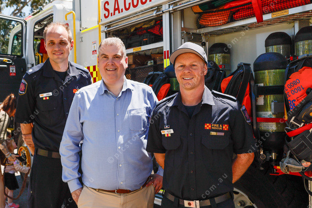 Daniel Adamson, City of Playford Mayor Glenn Docherty and Mutchie Mutch. (511831_08)