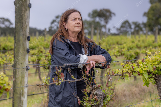 Kirsten Hardiker and damaged vines.