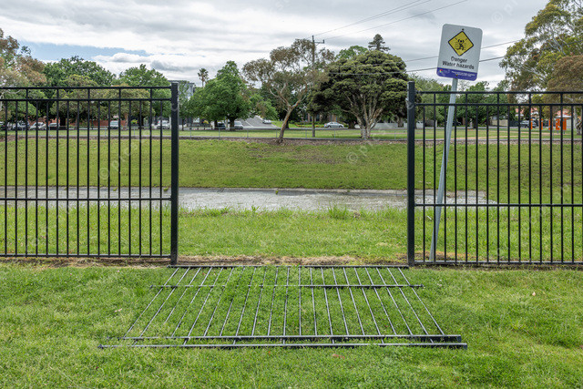 Fence missing Next to Red Gum Rest playground next to the Princes Hwy Dandenong.