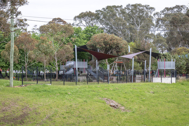 The Red Gum Rest playground and missing fence plus the fence just ends. Although the actual play area is fenced off completely.