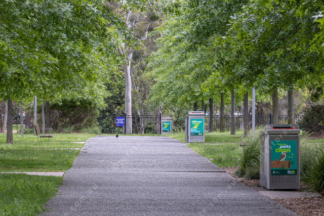 The end of the Dandenong Trail next to Red Gum Rest playground looking towards the creek, part of fence missing and it ends not far from this area.