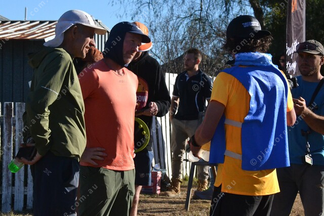 Runners Harvey Lewis and James Blanton quickly catch up with Sam Harvey before Sam heads out for another loop. 486775_14