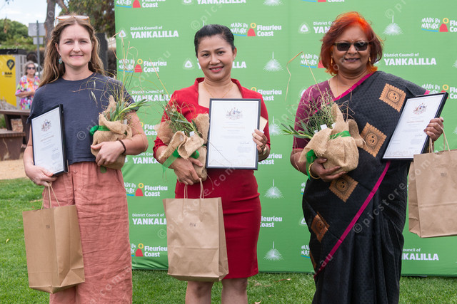 The District Council of Yankalilla’s three newest citizens are Samantha Farley, Thanaporn Zarina, and Kalpana Reddy. (Dani Brown: 455728_06)