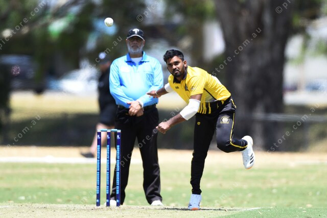 Ashan Madhushanka Walgamage (Beaconsfield) bowls to Roshane Silva (Buckley Ridges). 527662_05