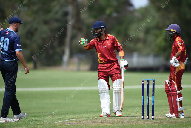 Dispute? Batsman Jawid Khan (Hallam) discusses something with a Buckley Ridges player. 537216_05