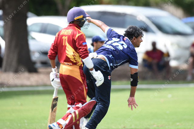 Ishan Jayarathna (Buckley Ridges) bowls to Jordan Hammond (Hallam). Batsman watching is Damith (Hallam). 537216_18