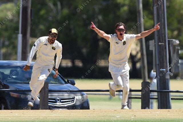 Joseph Cotton (Beaconsfield) catches a ball from batsman Shaun Weir (Dandenong West). 530014_25